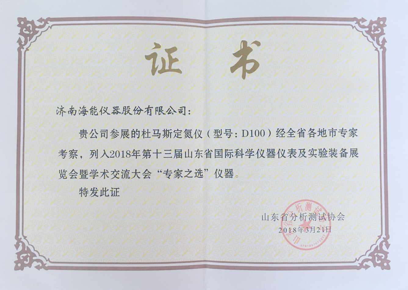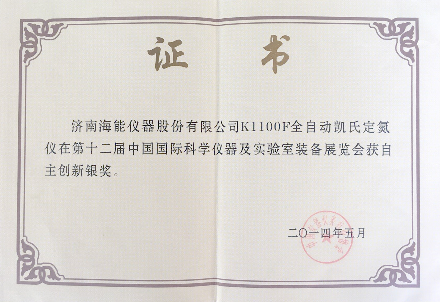 凱氏定氮儀獲獎證書