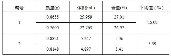 量取15mL純化水加入滴定杯中,稱量清零,加入1mL樣品蓋好瓶塞,立即稱量,再加入40mL水,用鹽酸溶液在電位滴定儀上滴定至終點,同時作空白試驗。