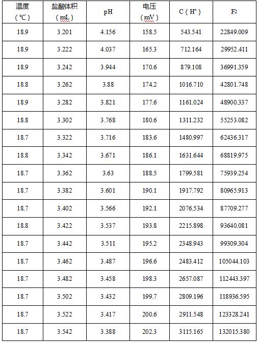 儀器在第二等當點后(pH=4.5)會得到一系列數據(即pH范圍為4.3-3左右的數據),從中選取18個點(表2)