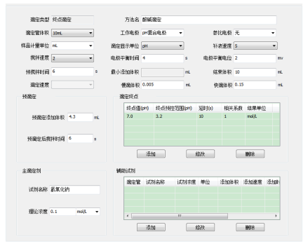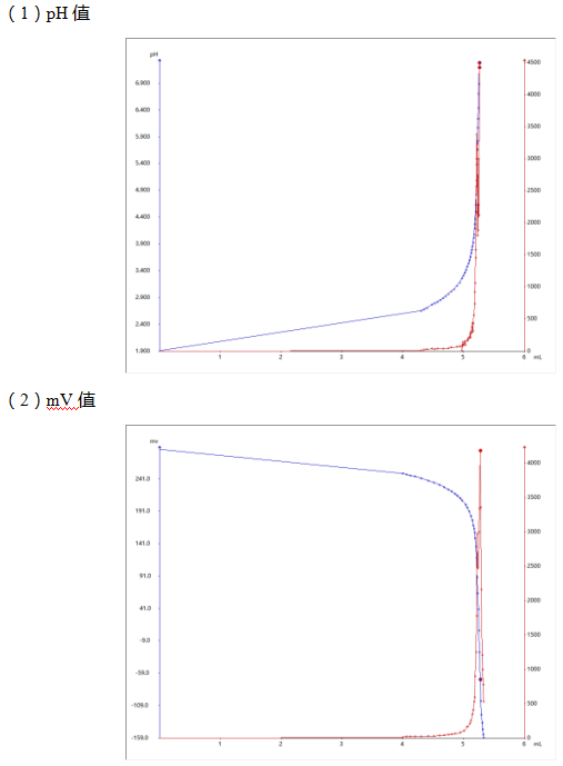用大肚移液管取5.0mL鹽酸,加入50mL水,用氫氧化鈉標準溶液滴定至終點,分別用pH和mV值顯示。同時做空白實驗。