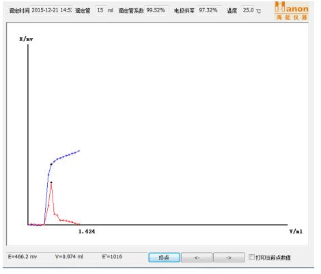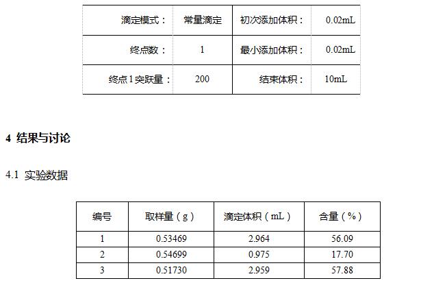 用移液槍移取試液5mL,加入10mL飽和焦磷酸鈉,80mL稀釋水于滴定杯中,以鉑電極作指示電極,飽和甘汞電極作參比電極,高錳酸鉀進行滴定。