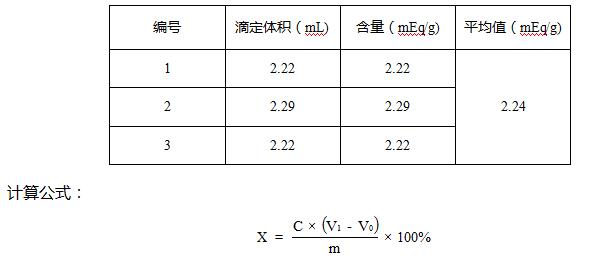 X --樣品中總酸性基含量,單位為(mEq/g);