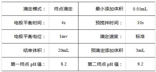 用移液管準確量取10mL樣品于滴定杯中,加水50mL,攪拌均勻后用氫氧化鈉標準滴定溶液滴定至終點為8.2,后加入10mL甲醛溶液,攪拌均勻后,繼續滴定至終點為9.2,同時做空白試驗。