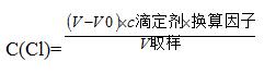 ,其中V是消耗滴定液體積,V0是空白體積,c滴定劑是滴定劑濃度,為0.002mol/L,不同的換算因子,可以將氯離子的含量表示成不同的單位,如表示成ppm,即換算因子為35453,如果表示成mmol/L,則換算因子為1000。