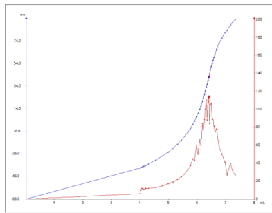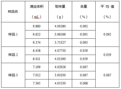 由于滴定劑濃度偏小,圖譜在終點附近可能出現些許雜峰,建議通過“數據平滑”處理。三種樣品圖譜形狀類似,因此本報告僅提供了一張圖片。