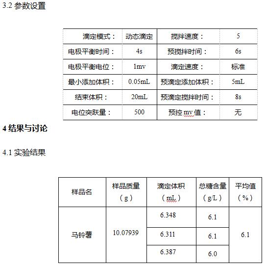 根據標準要求,用電位滴定法測定馬鈴薯中還原糖含量,兩次測定結果的絕對差值小于其算術平均值的5%,實驗結果重復性較好。