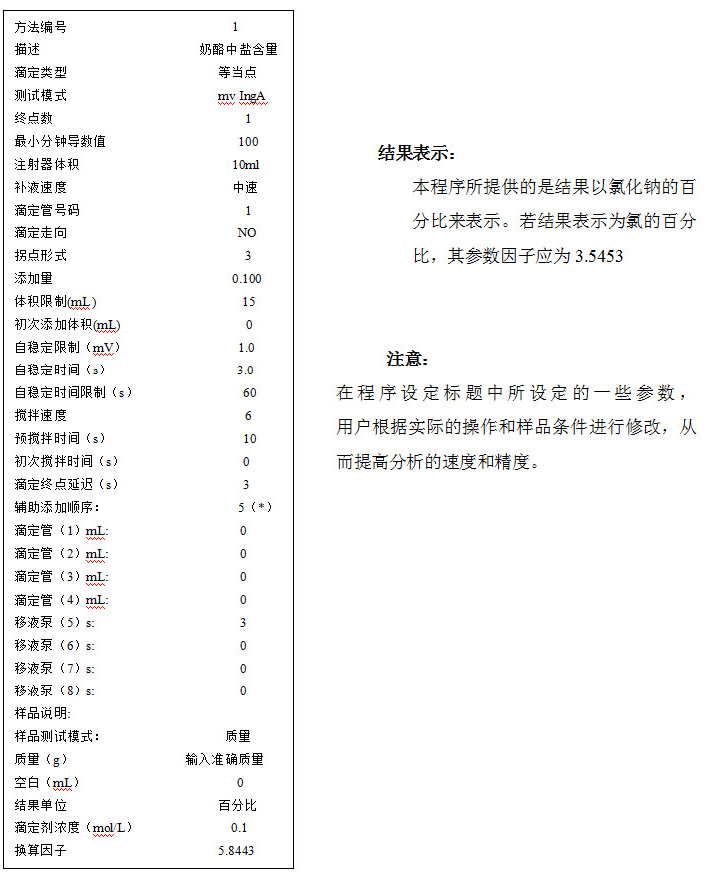 奶酪中氯化物的測定(即氯化鈉含量),是使用標準濃度的硝酸銀溶液來進行滴定的,通過以下反應,將氯化物按照化學計量學定量沉淀為氯化銀。