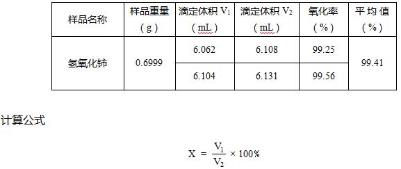 X --四價鈰的氧化率,%;