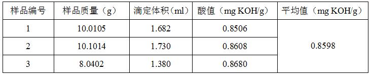 試樣溶解在含有少量水的石油醚-異丙醇混合溶劑(標準中使用溶劑為甲苯異丙醇混合溶劑,溶于甲苯毒性較大,使用石油醚代替甲苯)中,以氫氧化鉀異丙醇標準溶液為滴定劑進行電位滴定,所用的電極對為玻璃指示電極-甘汞參比電極,在儀器繪制的電位曲線圖上把明顯突躍點作為終點。(參照GB/T 7304-2000石油產品和潤滑油酸值測定法-電位滴定法)