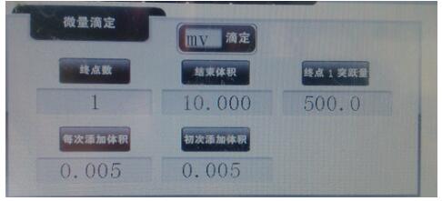 取70ml混合好的異丙醇石油醚混合樣品溶劑于滴定杯中,將電極插入到溶液中,調整好電極的高度,確保滴定杯中的磁子不會打到電極。儀器中選擇“滴定”—“微量滴定”,參數設定完成后進行滴定。儀器上的相關參數設定如下圖示: