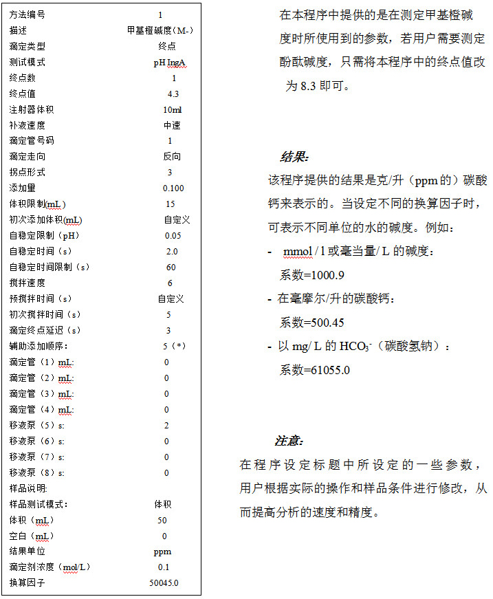 1、使用“新方法”,選擇“終點”類型,將終點設定為pH=4.3來測定水的堿度。