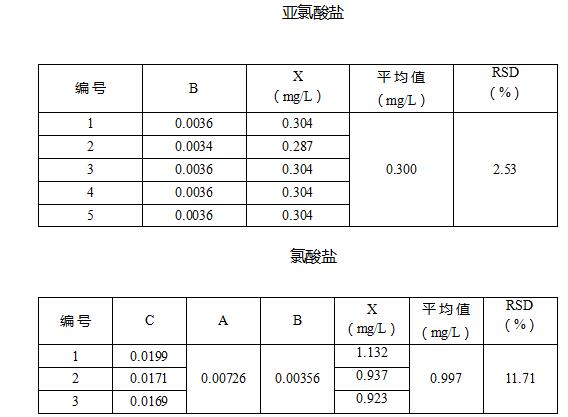 根據國標測定的亞氯酸鹽和氯酸鹽含量重復性良好。