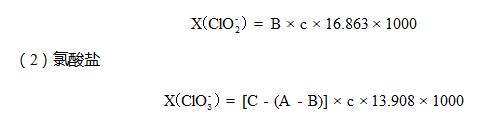 X --亞氯酸鹽和氯酸鹽的質量濃度,單位為毫克每升(mg/L);