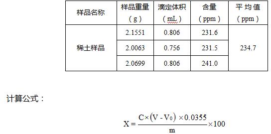 本文采用電位滴定的方式測定稀土樣品中氯離子的含量,實驗數據表明結果重復性良好,能夠滿足分析工作的需要。