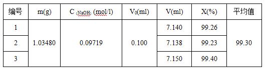準確稱取1g樣品加純化水定容到250ml容量瓶,移取10ml試液-70ml水,用氫氧化鈉標準溶液在電位滴定儀上滴定至終點,同時作空白試驗。