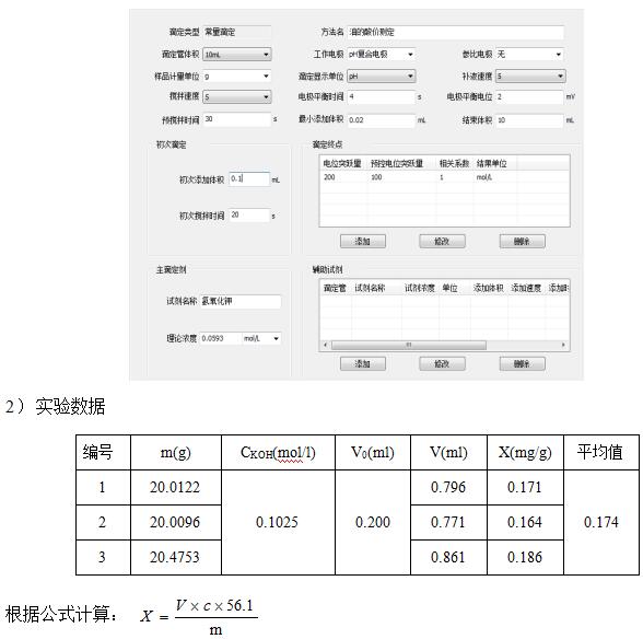 測定方法:準確稱取20g左右的油脂(若為固體先將其融化),置于滴定杯中,加入異丙醇-乙醚混合溶液60ml溶解,攪拌均勻,用氫氧化鉀標準滴定液(0.1mol/l),以pH非水電極為工作電極,在T960上進行滴定至終點。