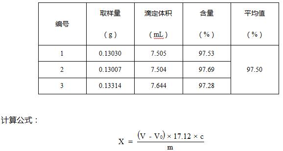 樣品中甲硝唑含量為97.50%(此結果按濕品計算)。樣品中的水分會對重復性有影響,建議用干品進行試驗。配合滴定儀自動進樣器進行滴定,操作方便節省了時間和人力,能快速的檢測出結果。