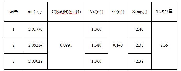 式中:x---試樣的酸價(以氫氧化鈉計),單位為毫克每克(mg/g)