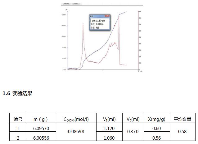 測定方法:將咖喱醬放到離心機上以6000轉/min的轉速離心5min,準確稱取6g左右的油脂,置于滴定杯中,加入異丙醇-乙醚混合溶液60ml溶解,攪拌均勻,用氫氧化鉀標準滴定液(0.1mol/l),以pH非水電極為工作電極,在T960上進行滴定至終點。