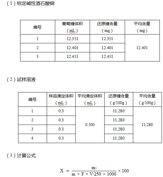 X --試樣中還原糖的含量(以葡萄糖糖計),單位為克每百克(g/100g);