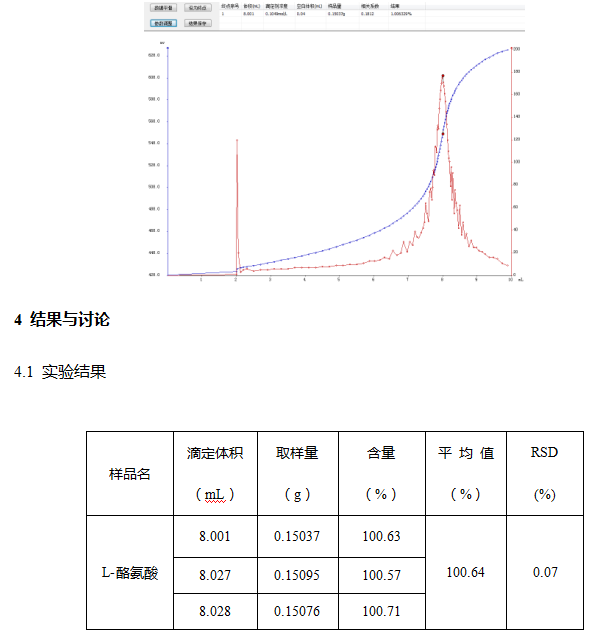 用電位滴定法測定L-酪氨酸的含量,操作步驟簡單、重復性好,還節省了時間和人力,保證了人員安全。