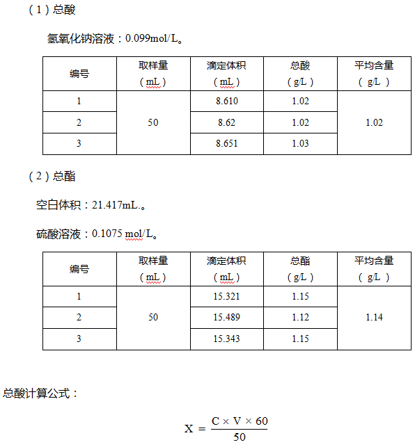 X ———試樣的總酸質量濃度(以乙酸計),單位為克每升(g/L);