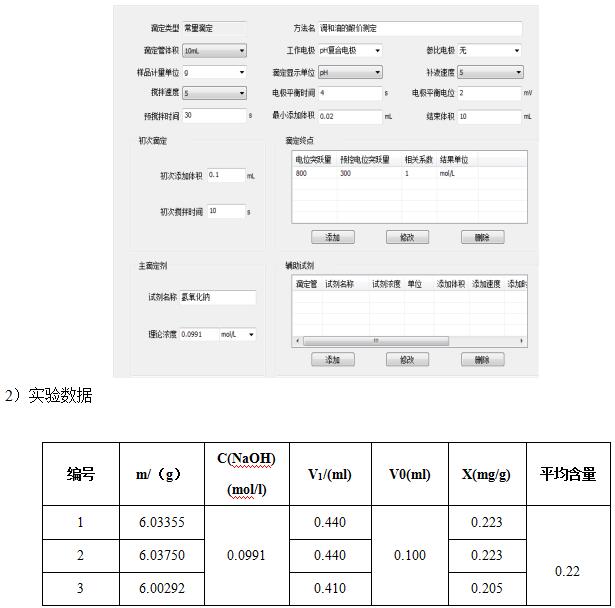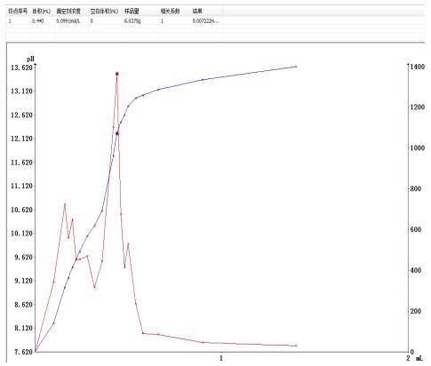 測定方法:準確稱取6g左右樣品,置于滴定杯中,加入異丙醇-乙醚混合溶液60ml溶解,攪拌均勻,用氫氧化鈉標準滴定液(0.1mol/l),以pH非水電極為工作電極,在T960上進行滴定至終點。