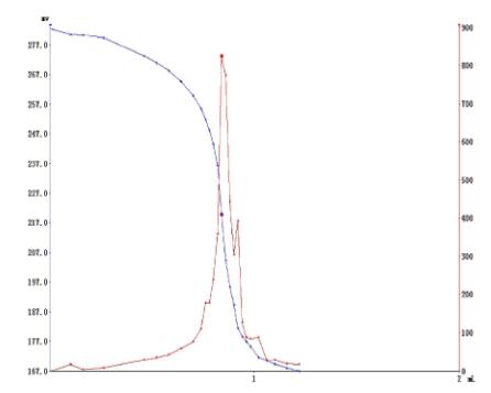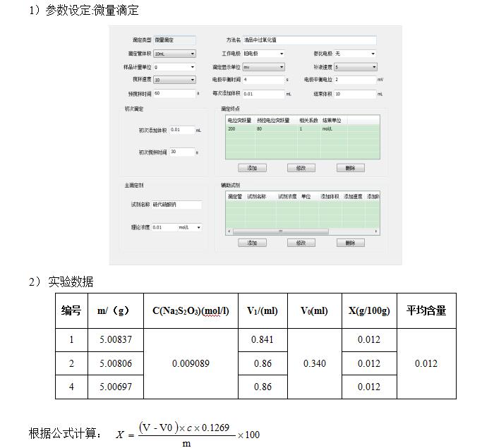 測定方法: 準確稱取5g左右樣品,置于滴定杯中,加入冰醋酸-異辛烷混合溶液50ml溶解,攪拌均勻,向滴定杯中準確加入0.5ml飽和碘化鉀溶液,開動攪拌器,在合適的攪拌速度下反應60s,立即向滴定杯中加入40ml去離子水,插入電極和滴定頭,設置好參數,用硫代硫酸鈉標準滴定液(0.01mol/l),以鉑復合電極為工作電極,在T960上進行滴定至終點。