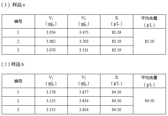 從電解液樣品中準確移取0.5mL電解液原液,置于滴定杯中,加60mL蒸餾水,用鹽酸標準滴定液進行滴定,記錄第一個突躍點消耗的滴定液的體積V1,繼續滴定,記錄第二個突躍點消耗的滴定液的體積V2。