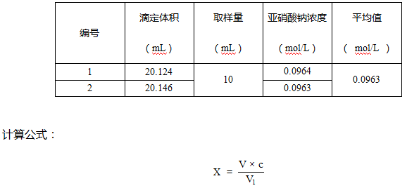 X --為亞硝酸鈉的濃度,單位為摩爾每升(mol/L);