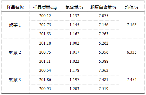 通過實驗結果可以看到,使用D100杜馬斯定氮儀測試奶茶中的粗蛋白含量結果準確,重復性符合標準,并且操作簡單便捷,可以為奶茶的生產廠家提供可靠的測試方法。
