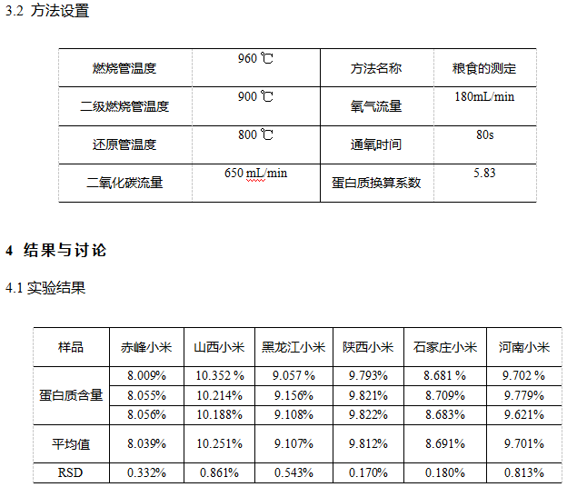 杜馬斯燃燒法測定小米中粗蛋白含量
