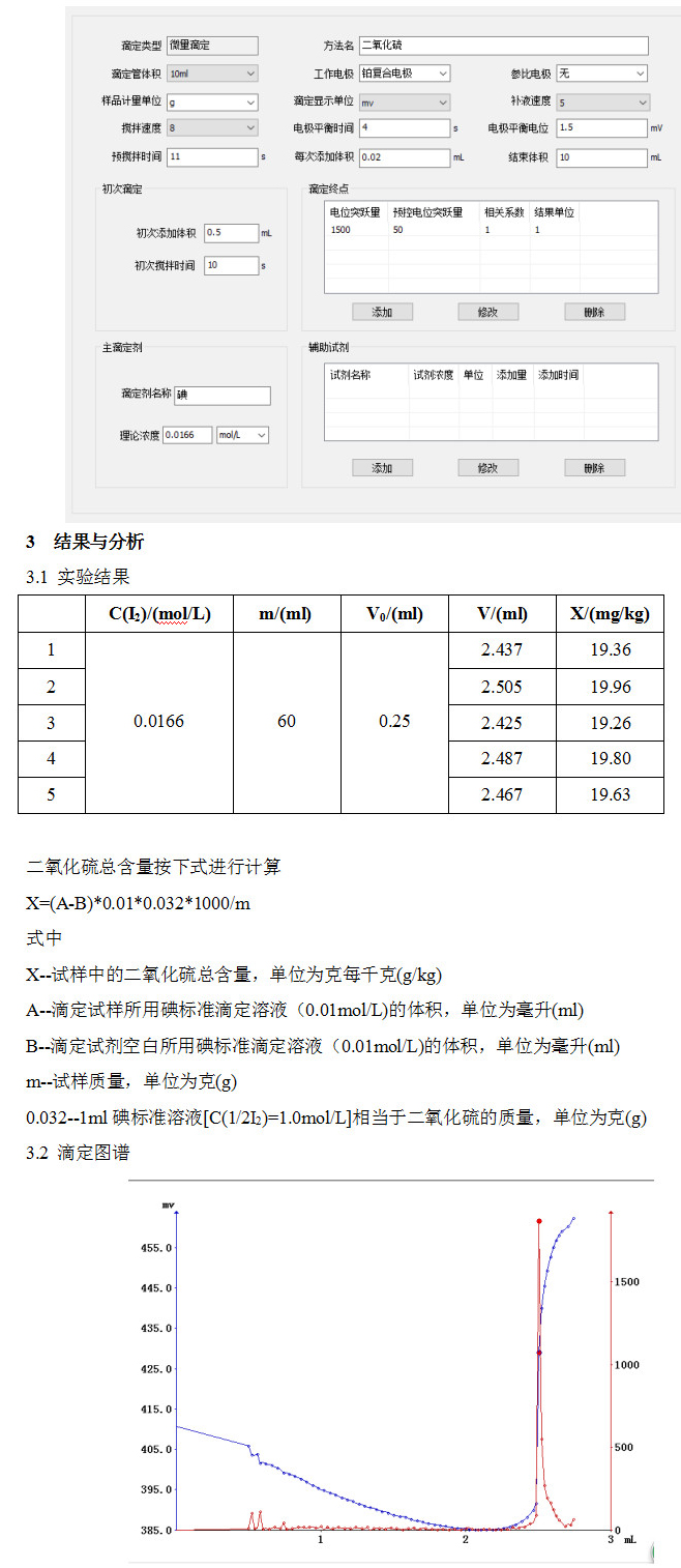 在密閉容器中對試樣進行酸化并加熱蒸餾,以釋放出其中的二氧化硫,釋放物用乙酸鉛溶液吸收。吸收后用濃酸酸化,再以碘標準溶液滴定,根據所消耗的碘標準溶液量計算出試樣中的二氧化硫含量。