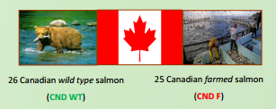 樣品:野生三文魚(26個、加拿大)和養殖的三文魚(25個、加拿大)