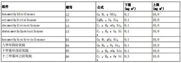 該方法適用于表1中規定的濃度范圍內的硅氧烷。