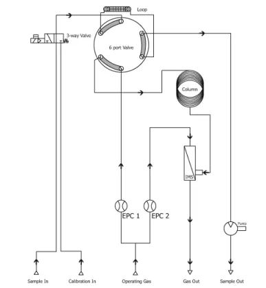1.從工藝管道中提取具有代表性的氣體燃料樣品,并通過適當設計的取樣系統及時轉移到硅氧烷分析儀的入口。樣品基質對硅氧烷含量的影響很小,可以忽略不計。將氣體從工藝管道或管道輸送到儀器的管路加熱到至少65℃,防止較重的硅氧烷氣體冷凝。分析儀樣品管路充滿已知體積的樣品氣體,然后將樣品管路中的分析物導入GC-IMS。
