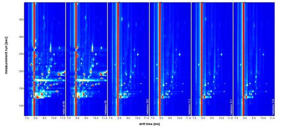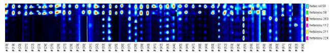 A. 譜圖中的每一個點代表著一種揮發性有機物,白色表示濃度較低,紅色表示濃度較高,顏色越深表示濃度越高