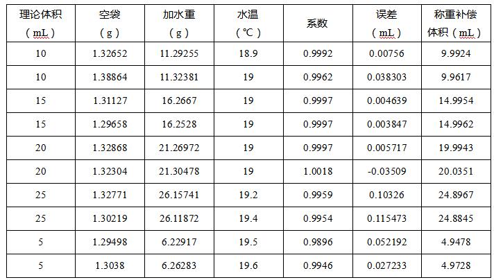 根據實驗得知,25mL管的容量誤差經系數補償后達到了相關級的標準。