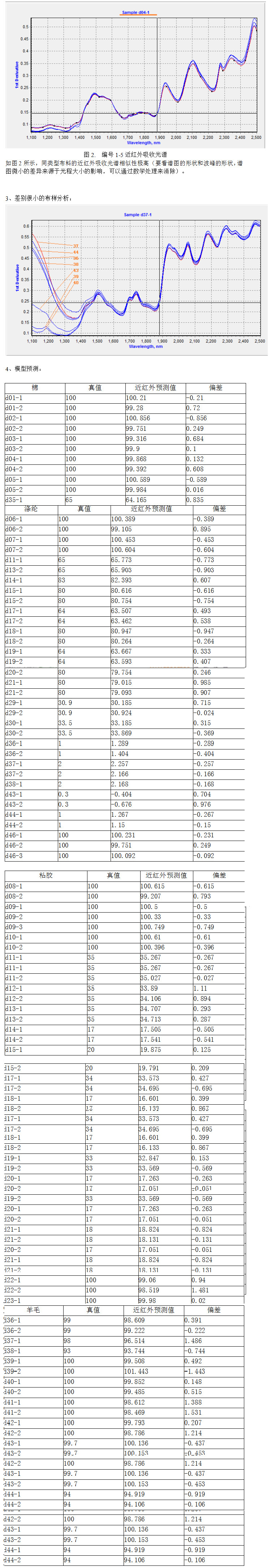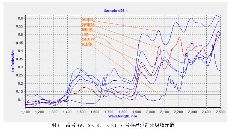 如上圖 1,不同種類的纖維對近紅外的吸收光譜有明顯的區別(要分辨譜圖的形狀和波峰的