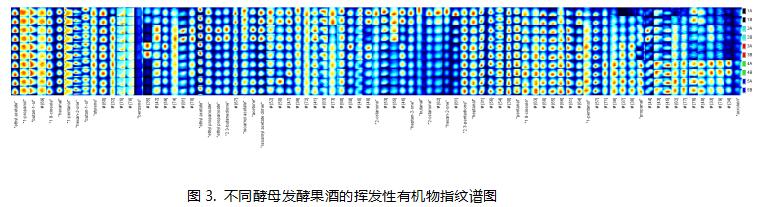 使用G.A.S.公司生產的FlavourSpec®風味分析儀,儀器無需真空且無需樣品前處理,經頂空進樣后可快速檢測不同酵母發酵樣品中的揮發性有機物,經過軟件分析,可得到以下信息: