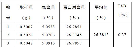 通過數據可知,利用全自動凱氏定氮法測定扁桃中的蛋白質含量平行性良好,且具有操作簡單,安全性高,節省人力等優點。