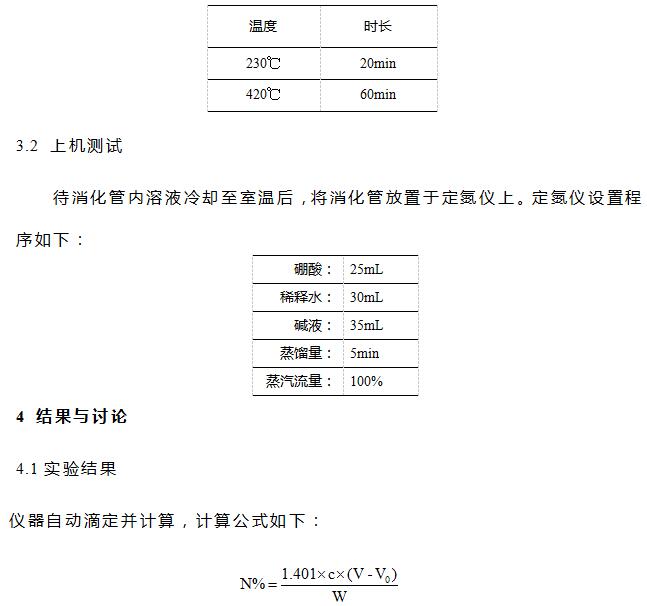 本文采用全自動凱氏定氮儀代替原有玻璃器具和半自動儀器完成實驗,具有操作簡便,實驗數據準確、重復性好等優點。
