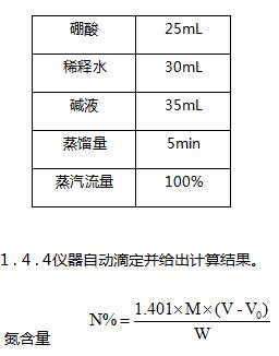 待消化管內溶液冷卻至室溫后,將消化管放置于定氮儀上,開始蒸餾滴定。定氮儀設置程序如下: