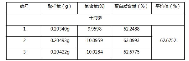 使用凱氏定氮儀測試海參中蛋白質含量,結果準確,平行性良好。符合《GB 31602-2015 食品安全國家標準 干海參(2016-11-13實施)》中的要求。