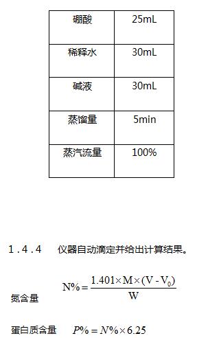 待消化管內溶液冷卻至室溫后,將消化管放置于定氮儀上,開始蒸餾滴定。定氮儀設置程序如下: