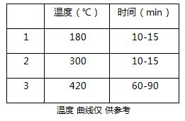 利用石墨消解爐進行消解,將消化管放在石墨爐上,蓋上排氣罩,連接廢氣吸收系統,設定消解溫度參數如下表: