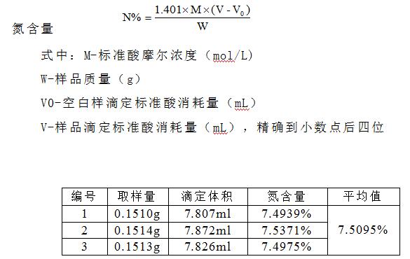 酵母粉中的有機態氮在濃硫酸和催化劑的共同作用下,轉化為氨態氮。加堿蒸餾后,用硼酸吸收后,再以鹽酸或硫酸標準滴定液進行滴定。