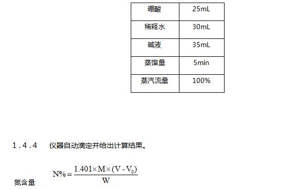 待消化管內溶液冷卻至室溫后,將消化管放置于定氮儀上,開始蒸餾滴定。定氮儀設置程序如下: