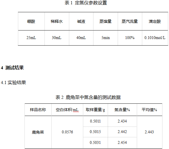 從實驗結果可以看到,采用K1100F凱氏定氮儀可以準確的檢測鹿角菜中的氮含量。