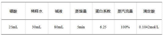 定氮儀參數設置如表。